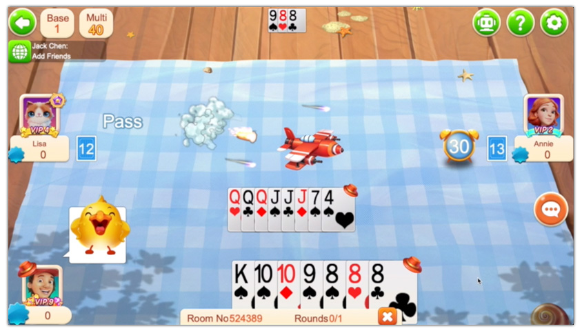 "Fight The Boss" is 2 VS 1 poker game, In the game, players are divided into two camps, Two Diors work together to fight against a Boss, The camp that finishes the cards first wins.
